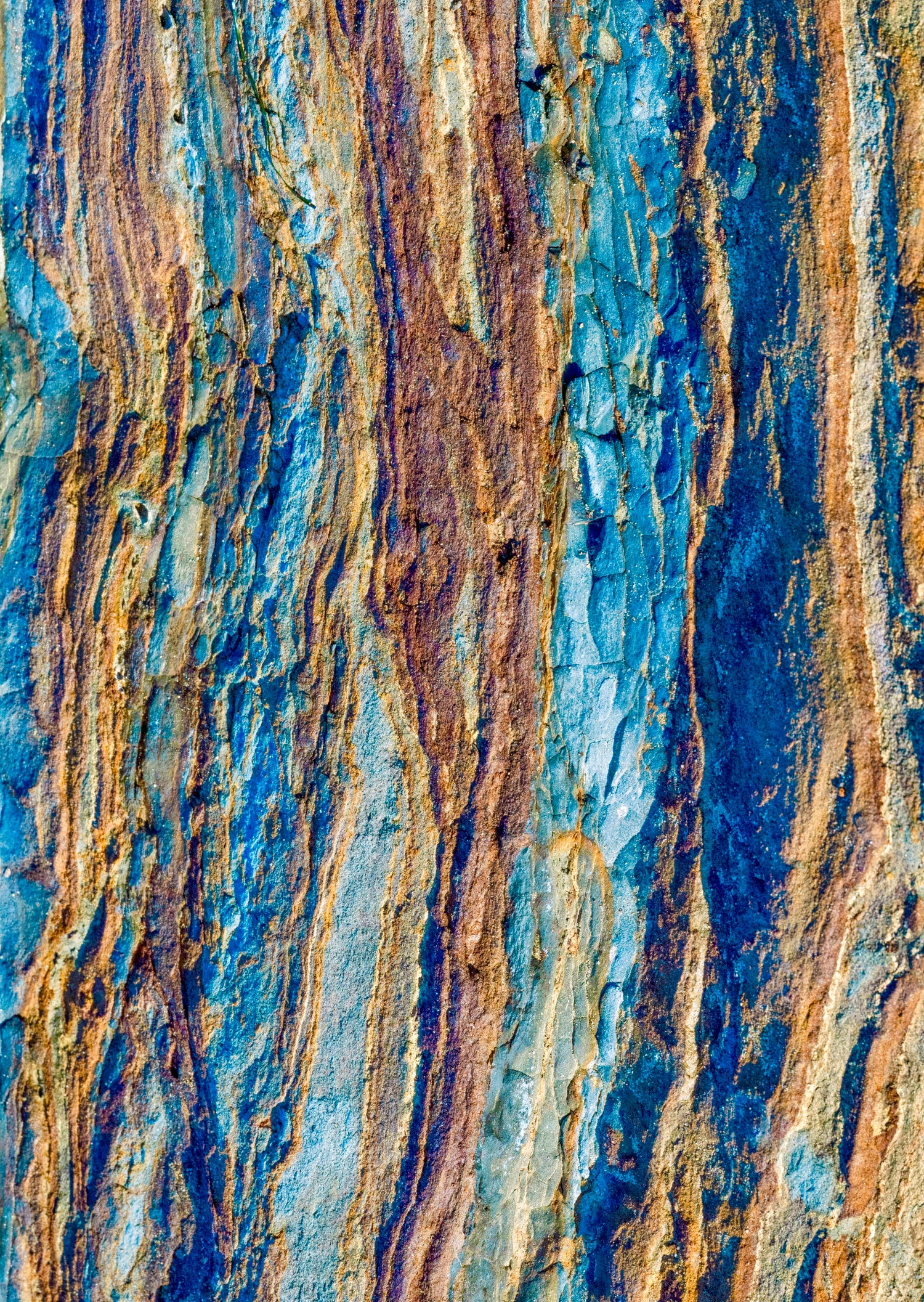 Colorful pattern of rocks under light shining in sunset in coastal beach of San Dieago, Southern California